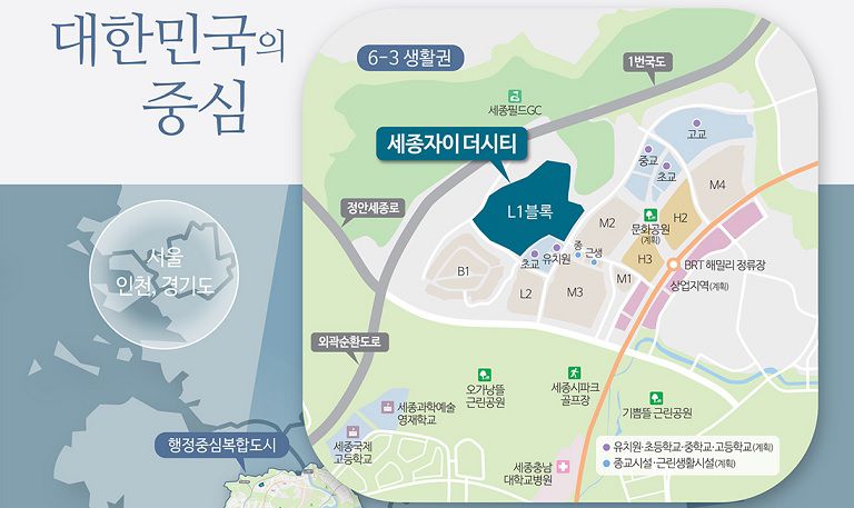 GS건설과 태영건설, 한신공영의 'GS건설 컨소시엄'은 세종 행정중심 복합도시 6-3 생활권 L1블록에 위치할 '세종 자이 더시티'를 7월 분양할 예정이라고 한다. 24개 동 1350세대의 대단지로 전용면적 84 ~ 154제곱미터의 다양한 평형으로 구성되어 있다. 이중 85제곱미터 초과 타입이 1200세대이다.